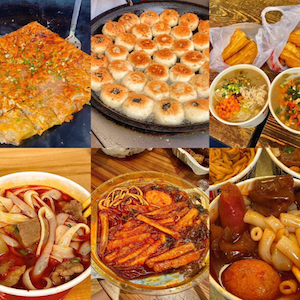 + Hồng Đường Bính (红糖饼): Bánh bột mỳ chiên rỗng ruột, bên trong có một ít đường đỏ chảy lỏng. Ăn nóng, cắn một miếng là đường chảy ra, ngọt ấm, vỏ giòn.
